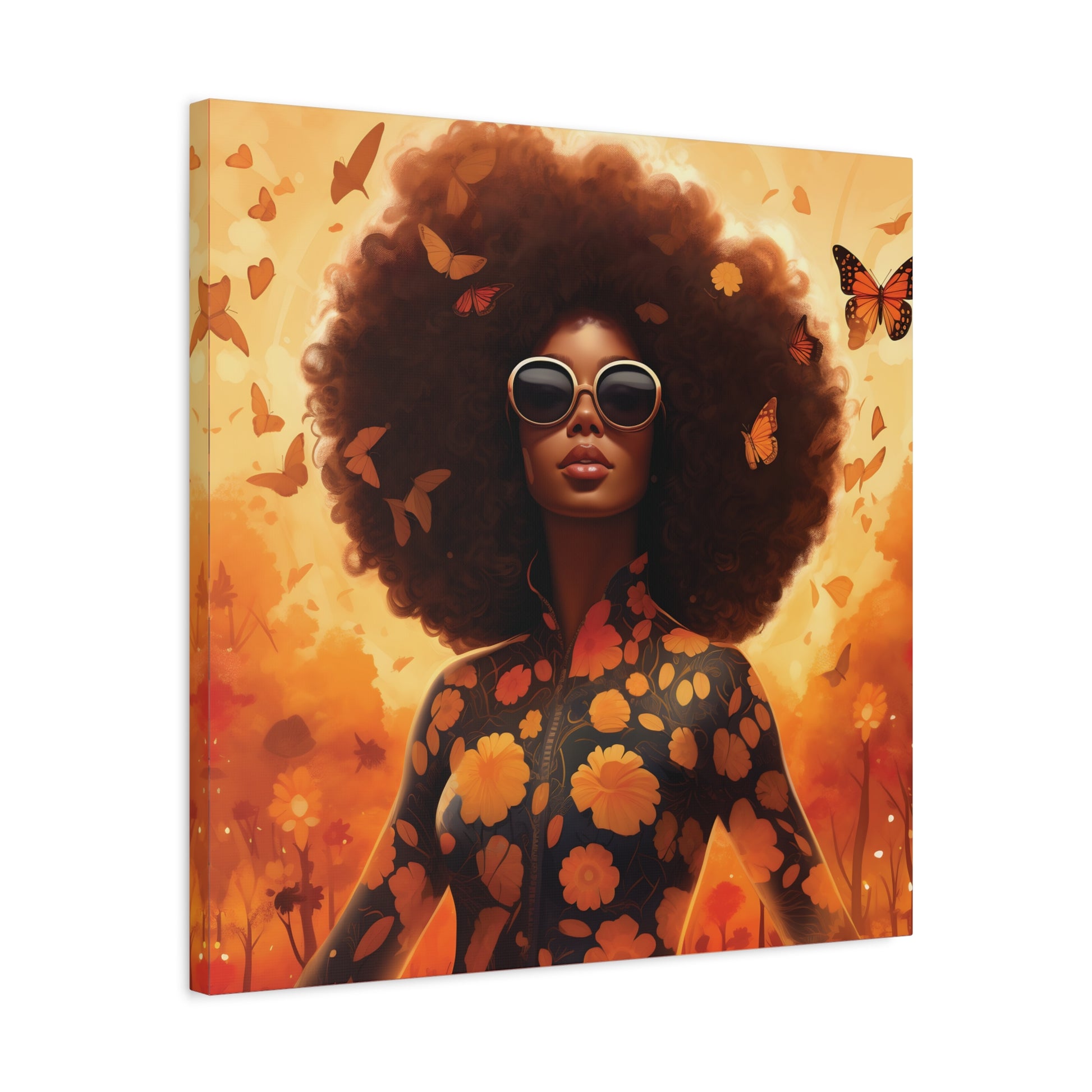 Floral Canvas Art, Bohemian Wall Decor, Afrocentric Home Decor, Vibrant Modern Art, Unique Gift Idea, Orange Butterfly Artwork