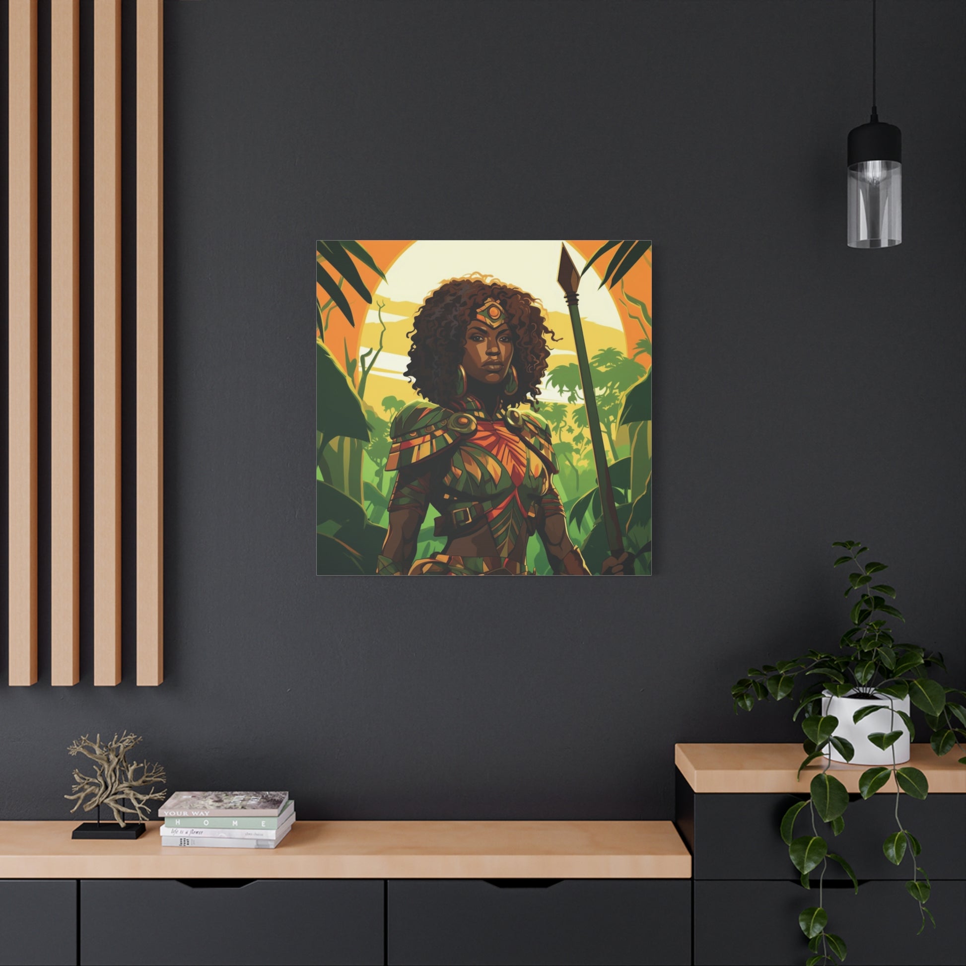 Jungle Warrior Queen Wall Art – Afrocentric Strength & Beauty Canvas Print | Jungle Wall Decor, Ethnic Artwork, Home Gallery, Gift for Art Lovers, Boho Decor